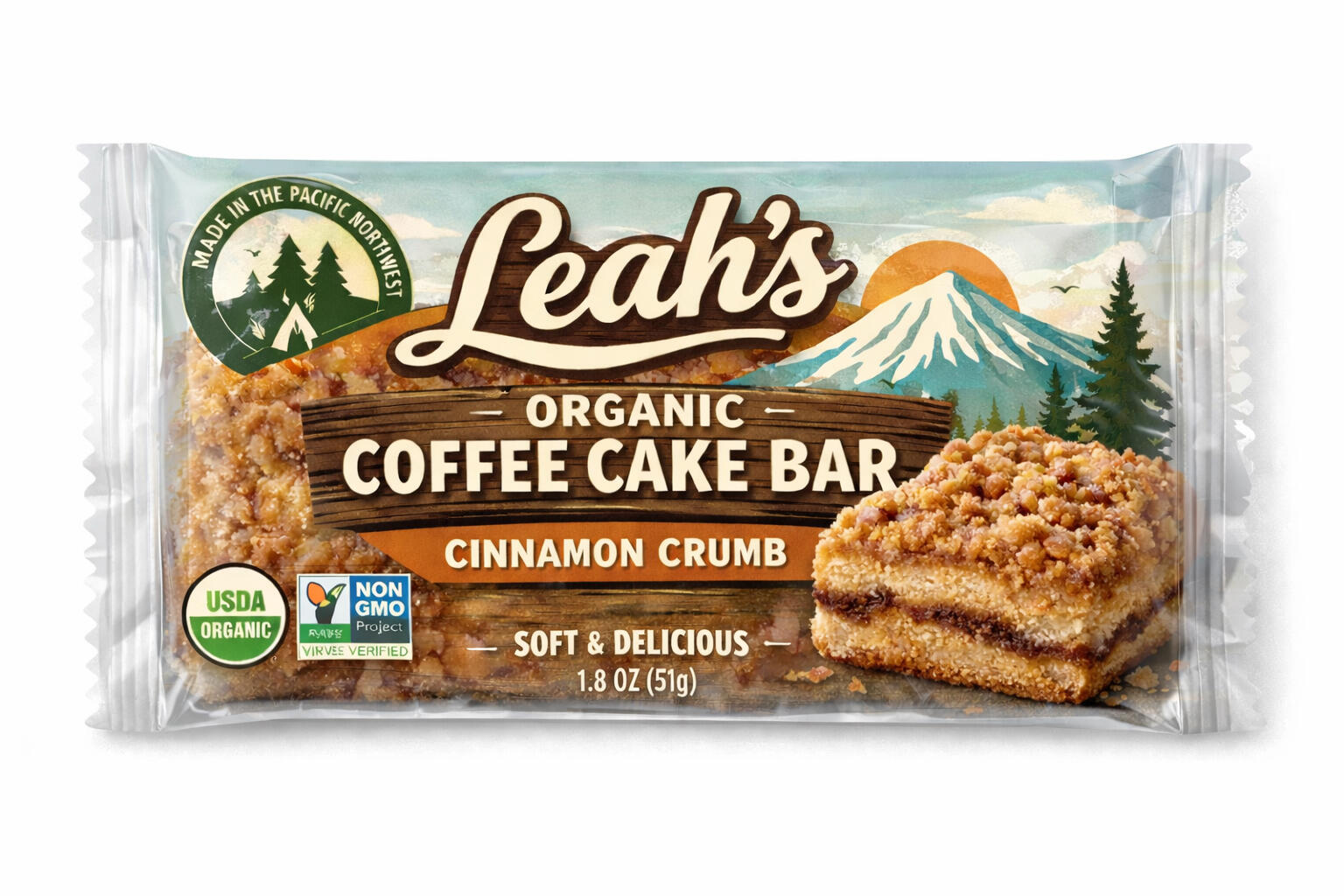 Leah’s Organic Coffee Cake Crumb Bar delivers the familiar comfort of bakery coffee cake in an individually wrapped, ambient-stable format. Built for strong velocity, clean ingredients, and reliable manufacturing — without sacrificing taste or texture.
